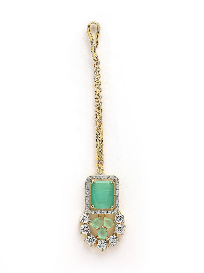 * Beautiful Design: Sukkhi Beautiful Jewellery Set features a gold-plated mint green collar necklace adorned with sparkling cubic zirconia, radiating elegance and charm. Complete Set: Includes matching stud earrings and a maangtikka, creating a coordinated and stylish look for weddings, festivals, and special occasions.