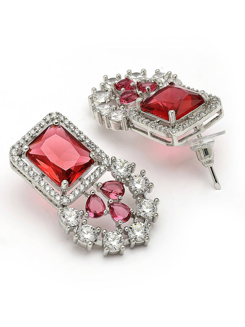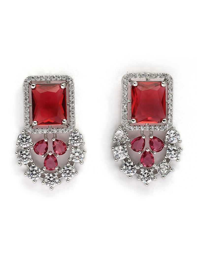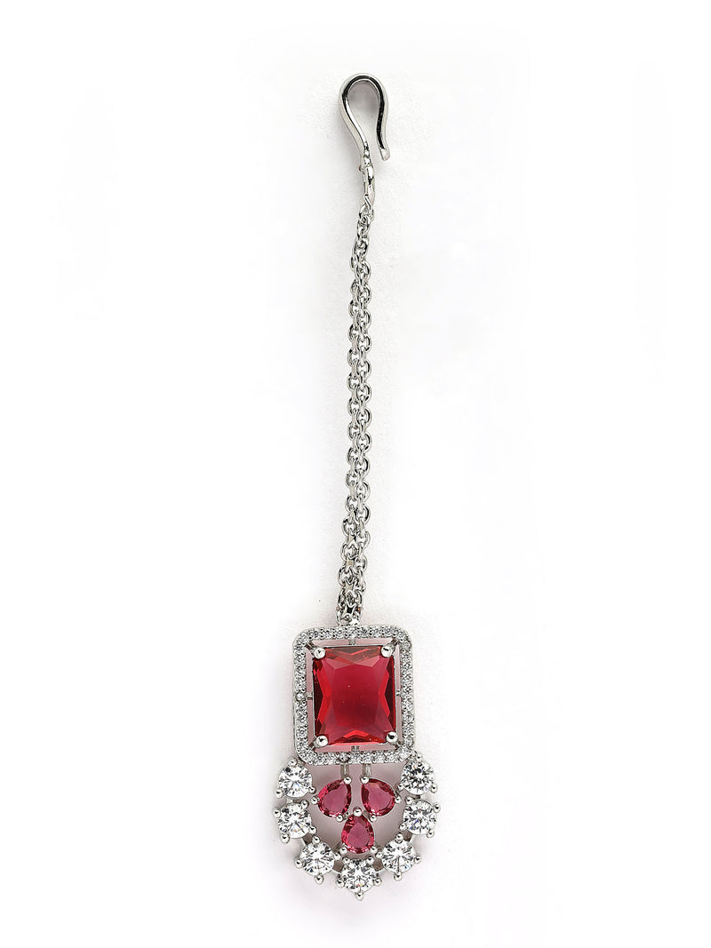 Sukkhi Charming Fashionable Rhodium Plated Red Cubic Zirconia Studded Brass Collar Necklace Set is crafted to enhance your festive and party look with timeless elegance. Made from good quality brass and finished with a durable rhodium plating, this jewellery set features radiant red cubic zirconia stones that offer a brilliant diamond like sparkle. The set includes a stylish collar necklace, matching stud earrings, and a graceful maangtikka, making it perfect for weddings, festivals, parties, and traditional functions. Lightweight, and comfortable for long wear, this elegant set is also an excellent gift choice for women on birthdays, anniversaries, and special occasions.