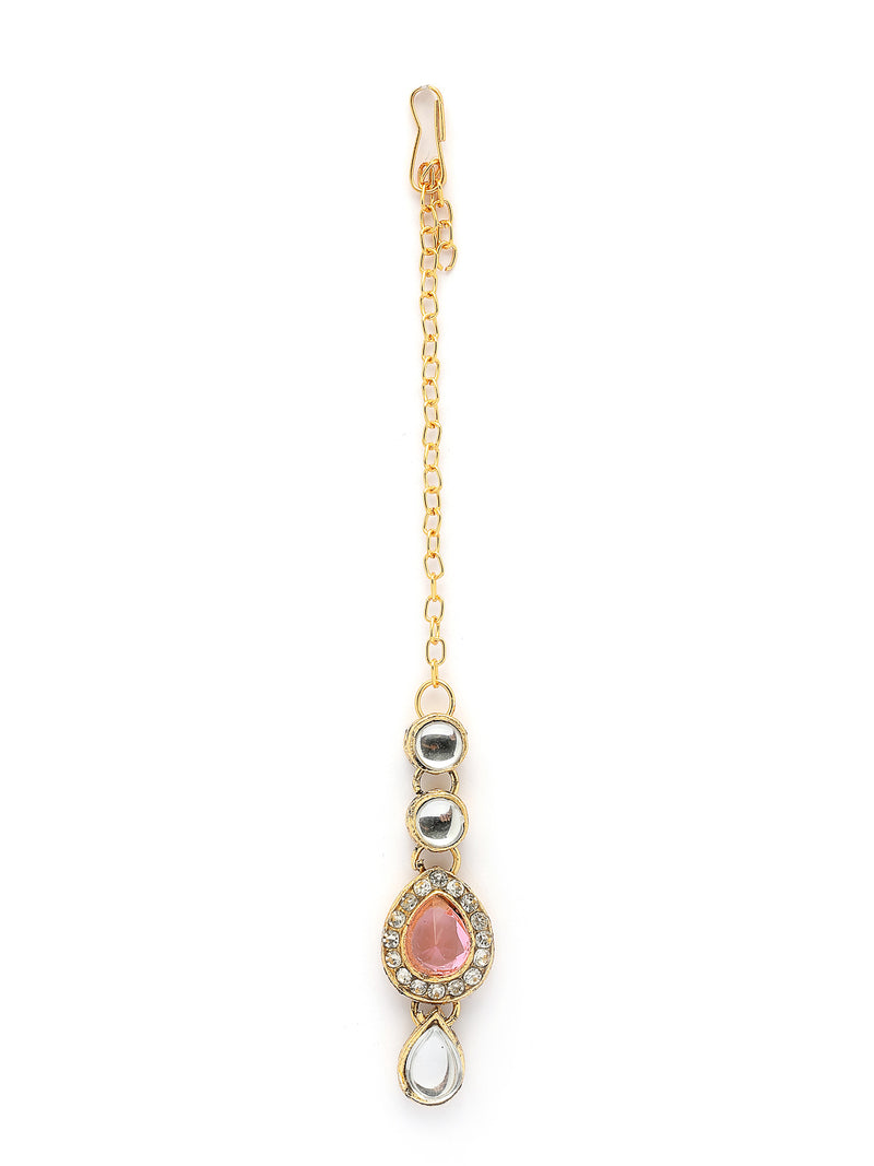 Sukkhi Elegant Stylish Gold Plated Kundan Studded Pink Choker Necklace with Drop Earring Maangtikka Jewellery Set for Women & Girls|NS107371
