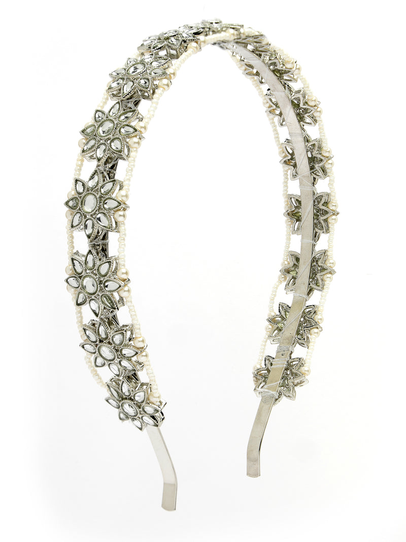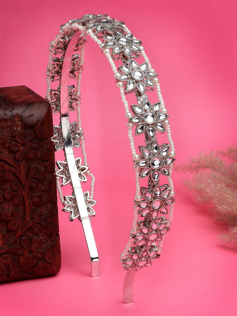 Sukkhi Latest Traditional Fashion Silver Phodium Plated with Kundan & Pearl Beaded Matha Patti, Sheesh Patti, Hair Band Hair Accessories Jewellery for Womens & Girls |Pack of 1|HBND106852