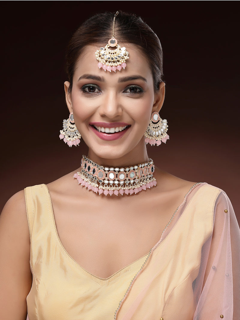 Sukkhi Pretty Gold Plated with AD Beads Choker Necklace Set Earring and Maangtikka Jewellery Set for Women is made of Alloy. Women love jewellery; specially traditional jewellery adore a women. They wear it on different occasion. They have special importance on ring ceremony, wedding and festive time. They can also wear it on regular basics. Make your moment memorable with this range. This jewel set features a unique one of a kind traditional embellish with antic finish.