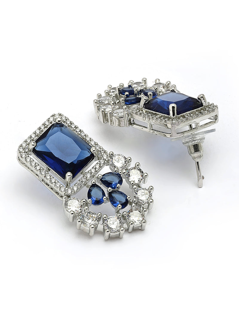 * Royal Design: Sukkhi Royal Blue Fashionable Jewellery Set features a rhodium-plated collar necklace adorned with sparkling cubic zirconia, offering a regal and stylish look. Complete Ensemble: Includes matching stud earrings and a maangtikka, providing a coordinated and glamorous appearance for weddings, parties, and festive occasions.