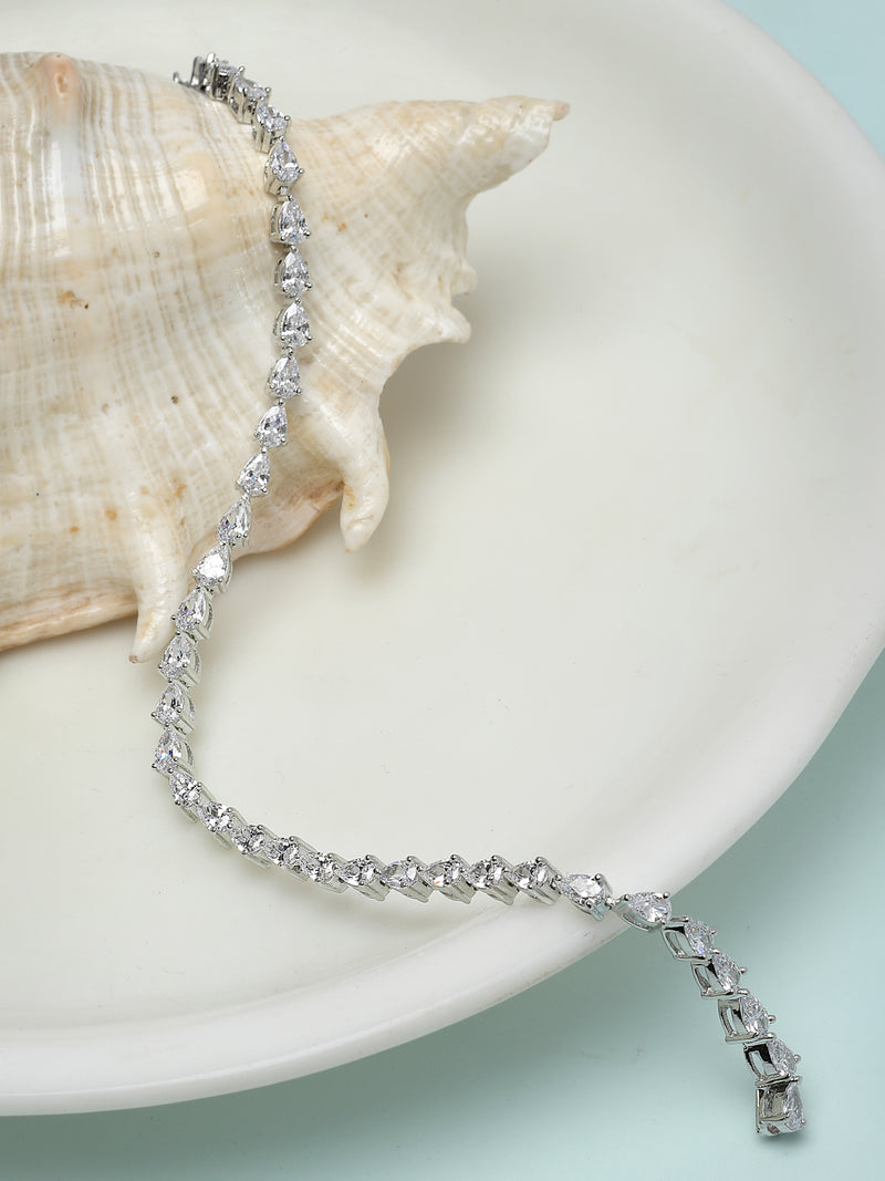 Pissara by Sukkhi Elegant 925 Sterling Silver Pear Shaped Cubic Zirconia Bracelets For Women & Girls|with Authenticity Certificate, 925 Stamp & 6 Months Warranty is made of Sterling Silver. Women love jewellery; specially Cubic Zirconia jewellery adore a women. They wear it on different occasion. They have special importance on ring ceremony, wedding and festive time. They can also wear it on regular basis . Make your moment memorable with this range. This 925 Stamped Sterling Silver jewellery features a unique one of a kind Fashion Jewellery for women and Girls.