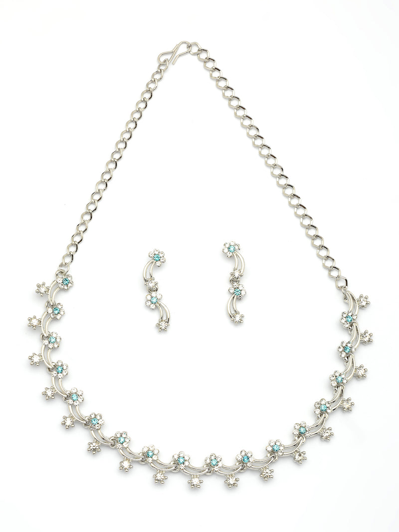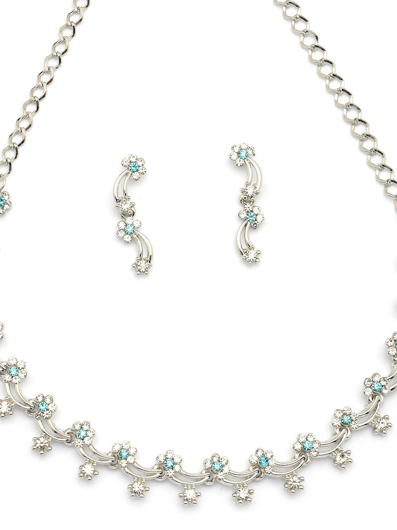 Sukkhi All Season Floral Design with Rhodium Plated AD Stones Silver Choker Necklace Set & Dangle Earrings Jewellery for Women|Jewellery for Party, Wedding, and Festive Occasions for Women|Sukkhi presents an all-season floral design choker necklace set, beautifully detailed with dazzling AD stones and finished with sleek rhodium plating. The floral motif adds a graceful charm, making it a fitting choice for women who enjoy elegant and timeless accessories. The set includes matching dangle earrings that enhance its overall appeal. Suitable for weddings, parties, and festive occasions, this silver-toned jewellery set blends tradition with modern flair. Whether styled with sarees, lehengas, or contemporary outfits, it adds a radiant touch to every look. An excellent gifting option for birthdays, anniversaries, and seasonal celebrations.