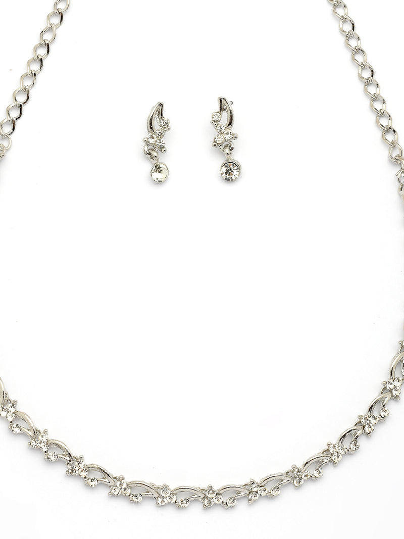 Sukkhi Attractive & Stylish Rhodium Plated AD Stones Studded Choker Necklace Set with Drop Earring Jewellery for Women & Girls|Jewellery for Party, Wedding, and Festive Occasions for Women|Sukkhi presents an attractive and stylish choker necklace set, crafted with attention to elegance and detail. This rhodium-plated set features shimmering AD stones that add a radiant touch, making it ideal for festive gatherings, weddings, and party wear. Paired with matching drop earrings, the design effortlessly blends traditional charm with a touch of modern flair. Designed for women and girls who love to make a graceful statement, this jewellery set enhances any outfit with its distinctive appeal. It’s a thoughtful choice for gifting on special occasions or adding a refined accent to your ethnic or fusion wardrobe.