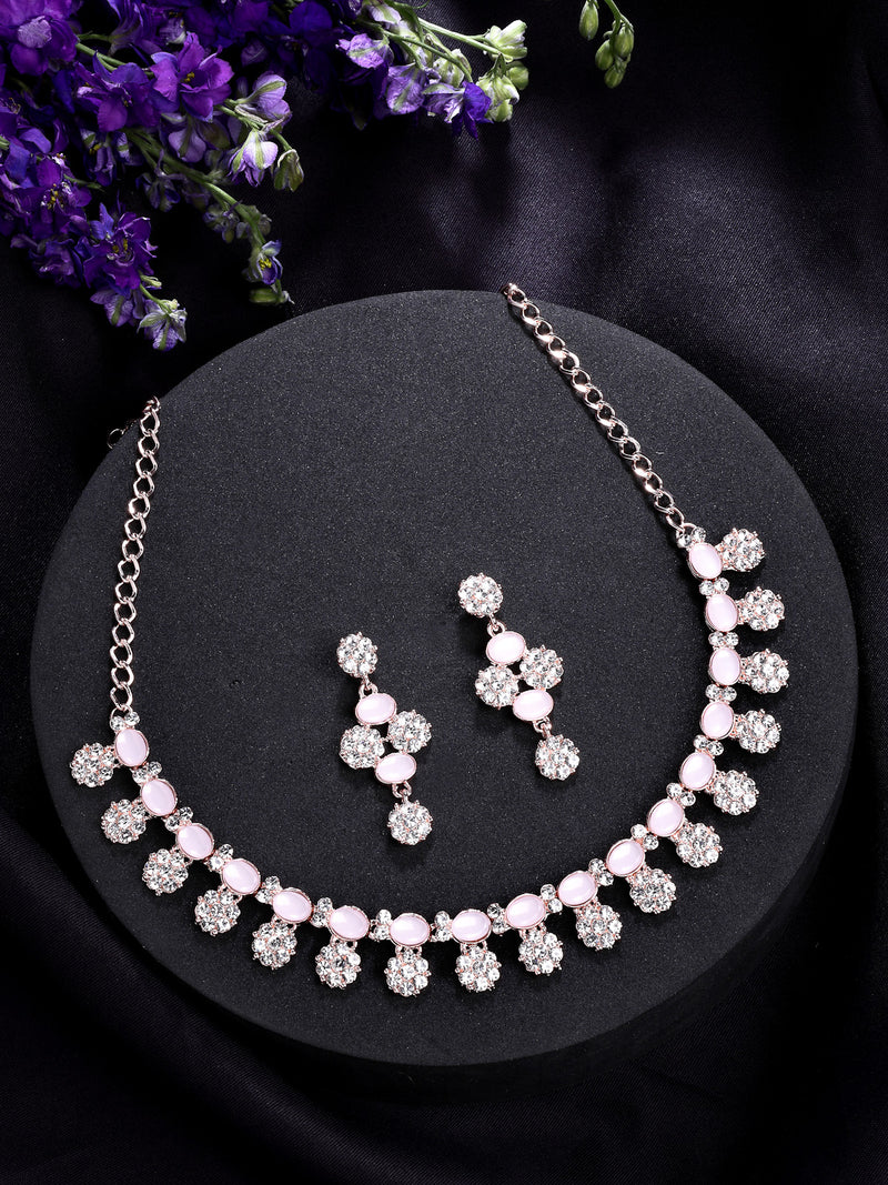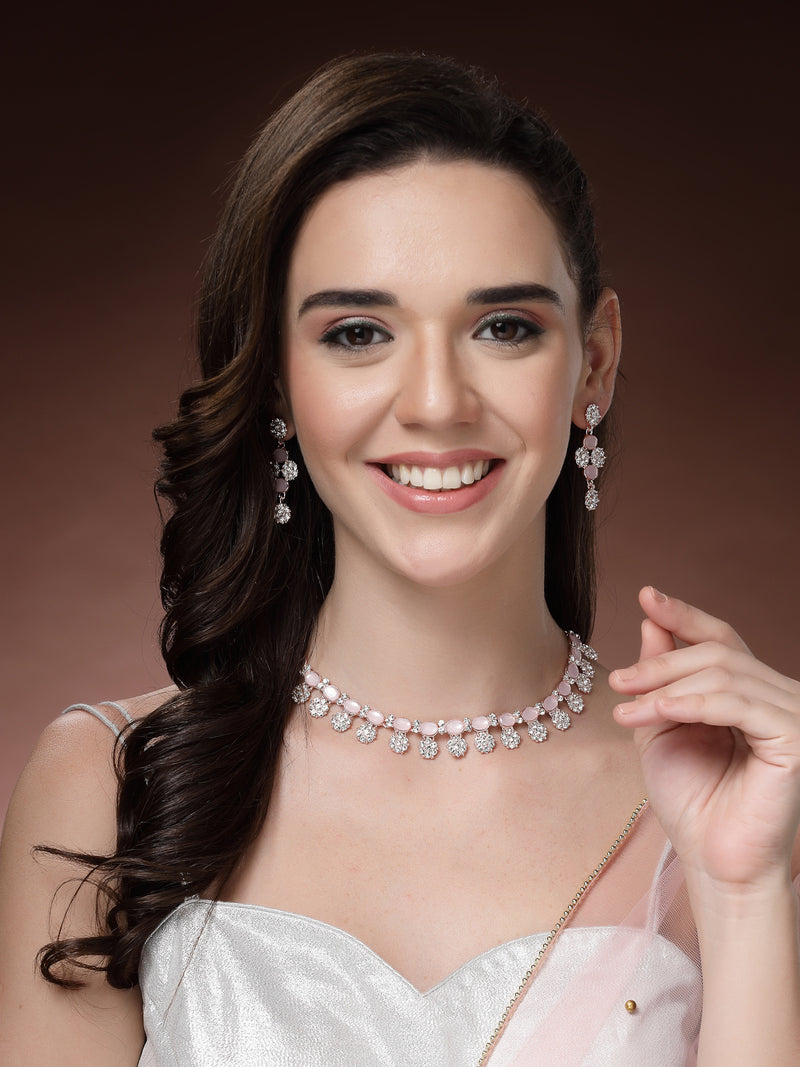 Sukkhi Beautiful Gold Plated Floral Design AD Stones Studded Choker Necklace Set with Drop Earrings Jewellery for Women & Girls|Jewellery for Party, Wedding, and Festive Occasions for Women|Sukkhi brings you a beautiful floral-inspired choker necklace set, thoughtfully crafted with a gold-plated finish and adorned with sparkling AD stones. This elegant jewellery set features a graceful choker and matching drop earrings, making it an ideal accessory for festive occasions, weddings, and parties. The intricate floral detailing enhances the traditional charm while maintaining a touch of modern design. Designed to complement both ethnic and Indo-western outfits, it offers a balanced blend of sophistication and charm. Whether you're attending a celebration or gifting it to someone special, this set adds timeless elegance and refined beauty to any wardrobe.
