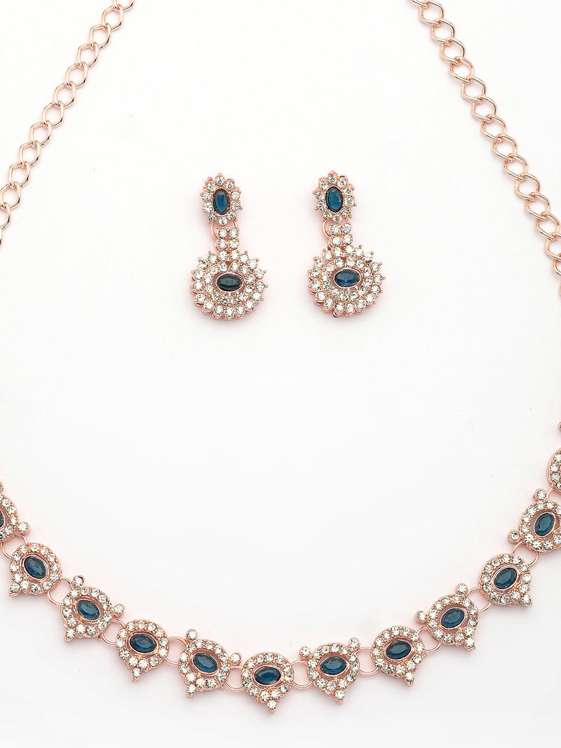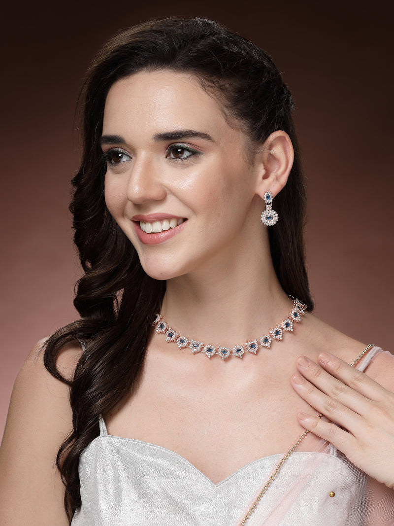 Sukkhi Beautiful Stylish Gold Plated AD Stones Studded Blue Choker Necklace Set with Drop Earrings Jewellery for Women & Girls|Jewellery for Party, Wedding, and Festive Occasions for Women|Sukkhi brings you a beautiful and stylish gold-plated choker necklace set, embellished with sparkling AD stones and highlighted by an elegant blue tone. The intricate detailing and refined craftsmanship make it a charming pick for festive celebrations, parties, or weddings. The set includes matching drop earrings that complement the necklace perfectly, enhancing your overall traditional look. Its graceful design pairs well with sarees, lehengas, or indo-western outfits. Whether you're dressing up for a special event or gifting it to someone dear, this jewellery set offers a striking presence and timeless appeal that reflects refined taste and personal style.