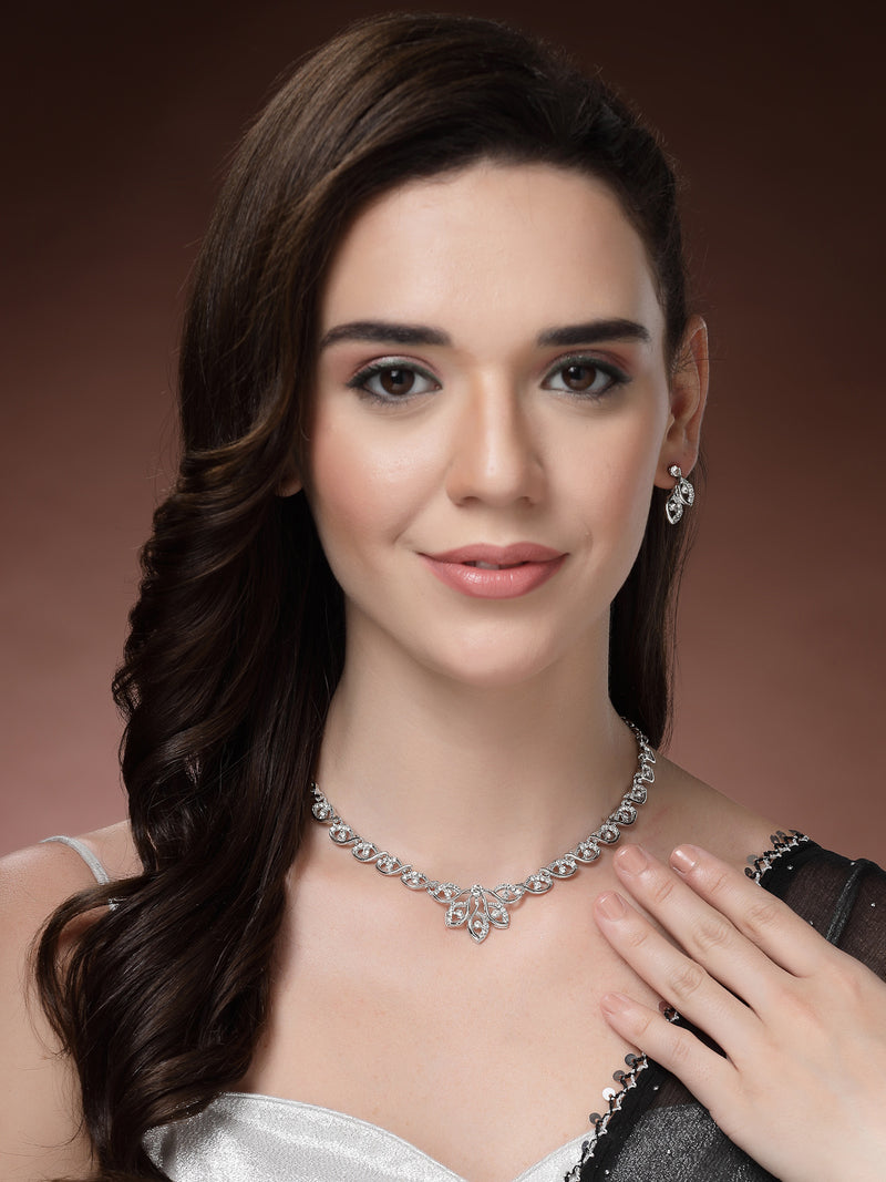 Sukkhi Decent & Shiny AD Stones Studded with Rhodium Plated Choker Necklace Set & Drop Earrings Jewellery for Women & Girls|Jewellery for Party, Wedding, and Festive Occasions for Women|Sukkhi introduces a decent and shiny choker necklace set that captures elegance through simplicity. Adorned with shimmering AD stones and finished with rhodium plating, this jewellery set includes a graceful choker and matching drop earrings. Designed to elevate both ethnic and fusion outfits, it adds a subtle sparkle perfect for weddings, festive celebrations, and special occasions. Crafted for women and girls who appreciate refined jewellery, this set is lightweight, wearable, and makes a charming gift for loved ones. Its versatile design blends traditional aesthetics with a modern twist, making it a standout piece in any accessory collection.