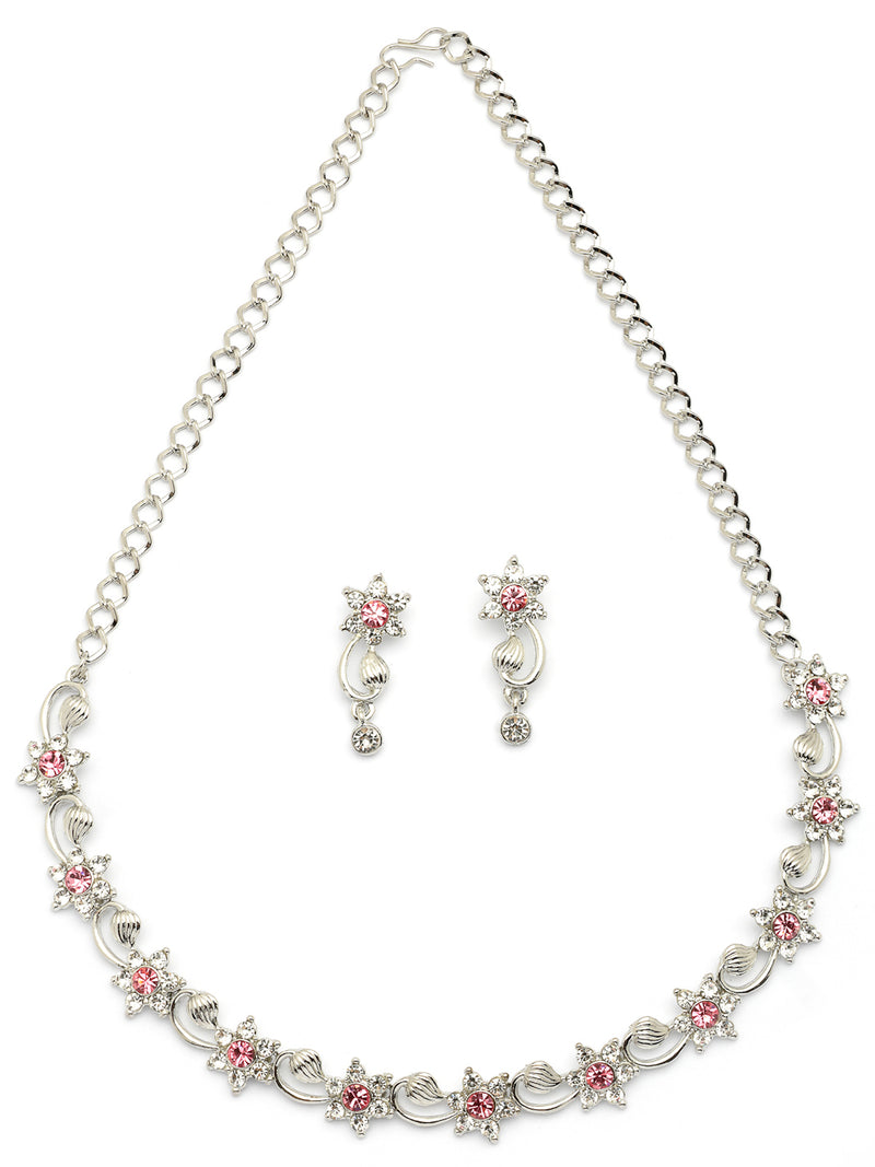 Sukkhi Floral Design with Rhodium Plated AD Stones Silver Choker Necklace Set with Drop Earrings Jewellery for Women & Girls|Jewellery for Party, Wedding, and Festive Occasions for Women|Sukkhi brings you a beautifully crafted choker necklace set featuring a delicate floral design, perfect for enhancing your festive and ethnic attire. Plated in rhodium and adorned with sparkling AD stones, the silver-toned necklace sits comfortably around the neck, offering a refined and elegant appeal. The coordinated drop earrings complement the overall design, making this set ideal for weddings, celebrations, and traditional gatherings. Whether you’re dressing up for a party or gifting someone on a special occasion, this jewellery set offers timeless charm and versatility. Add grace to your wardrobe with this thoughtfully designed and stylish piece from Sukkhi.