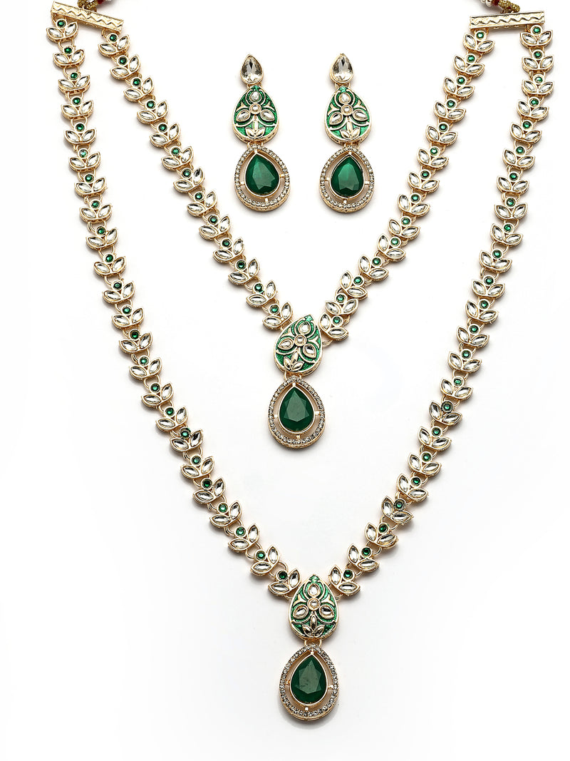 Sukkhi Impressive Gold Plated AD Stones Studded Green Layer Choker Necklace Set with Drop Earrings Jewellery for Women & Girls|Jewellery for Party, Wedding, and Festive Occasions for Women|Enhance your festive charm with this impressive gold-plated green layered choker necklace set from Sukkhi. Embellished with sparkling AD stones and rich green accents, the layered design brings depth and grace to any traditional outfit. The matching drop earrings complement the necklace, creating a well-balanced and eye-catching appearance. Ideal for weddings, parties, and festive gatherings, this jewellery set is crafted to highlight your neckline and elevate your ethnic wear. Perfect for women and girls who enjoy vibrant accessories, it serves as a thoughtful gift or a delightful addition to your personal jewellery collection for special celebrations.