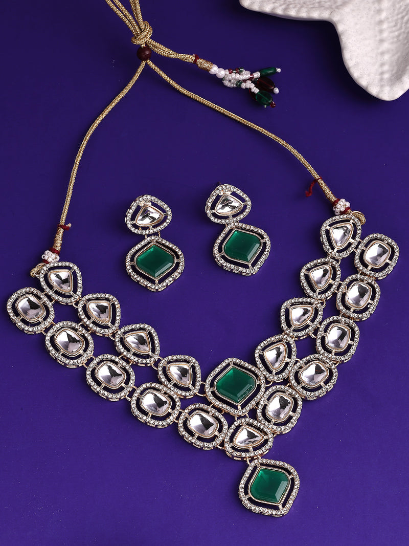 Sukkhi Trendy Stylish Gold Plated AD Stones Studded Choker Necklace Set with Drop Earrings Jewellery for Women & Girls|Jewellery for Party, Wedding, and Festive Occasions for Women|Elevate your festive look with this trendy and stylish choker necklace set from Sukkhi. Crafted with precision, the gold-plated choker is adorned with shimmering AD stones that reflect charm and elegance. The coordinating drop earrings add a graceful touch, making this set a perfect match for sarees, lehengas, or anarkalis. Ideal for parties, weddings, or festive gatherings, it offers a perfect blend of traditional appeal and contemporary design. Whether you’re dressing up for a celebration or choosing a thoughtful gift for someone special, this jewellery set brings a refined statement to any ensemble with its radiant finish and intricate detailing.