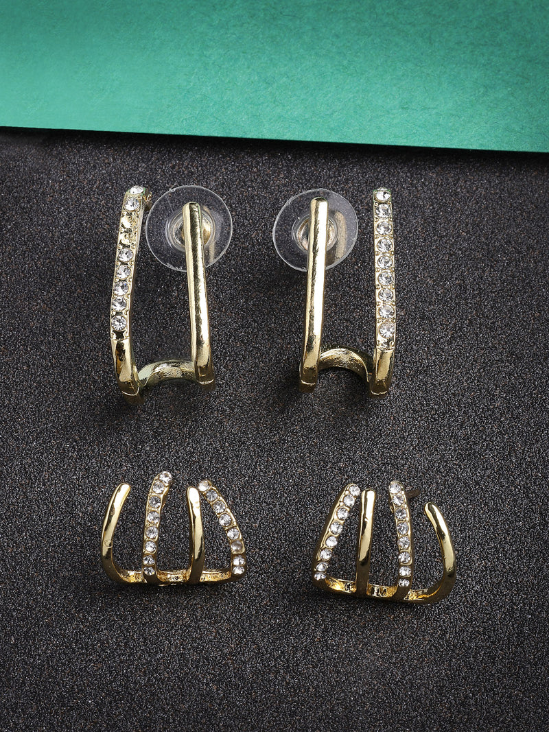 Scintillare By Sukkhi Trendy Latest Fashionable Gold Plated Crystal Diamond Studded Ear Cuff Combo Earrings For Women & Girls|Pc of 4|Gifts for Wife Girlfriend Mother Sister. Scintillare By Sukkhi introduces a trendy and fashionable combo of ear cuff earrings crafted in gold plating and adorned with crystal diamond detailing. Designed to bring a touch of bold elegance, these ear cuffs blend classic shimmer with a contemporary edge. Whether paired with ethnic wear or modern outfits, they instantly elevate your look with their distinct style. Ideal for women and girls who love to experiment with statement jewellery, this set makes a thoughtful choice for gifting on birthdays, anniversaries, or festive occasions. Add this stylish combo to your collection and redefine your accessory game with charm.