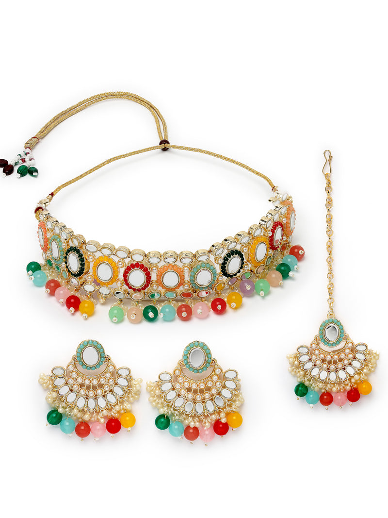 This Sukkhi Expensive Tranditional Multicolor Necklace Earring Jewellery Set with Maangtikka Jewellery Set for Women is made of Alloy. Women love jewellery; specially traditional jewellery adore a women. They wear it on different occasion. They have special importance on ring ceremony, wedding and festive time. They can also wear it on regular basics. Make your moment memorable with this range. This jewel set features a unique one of a kind traditional embellish with antic finish.