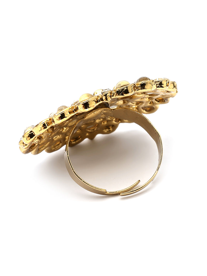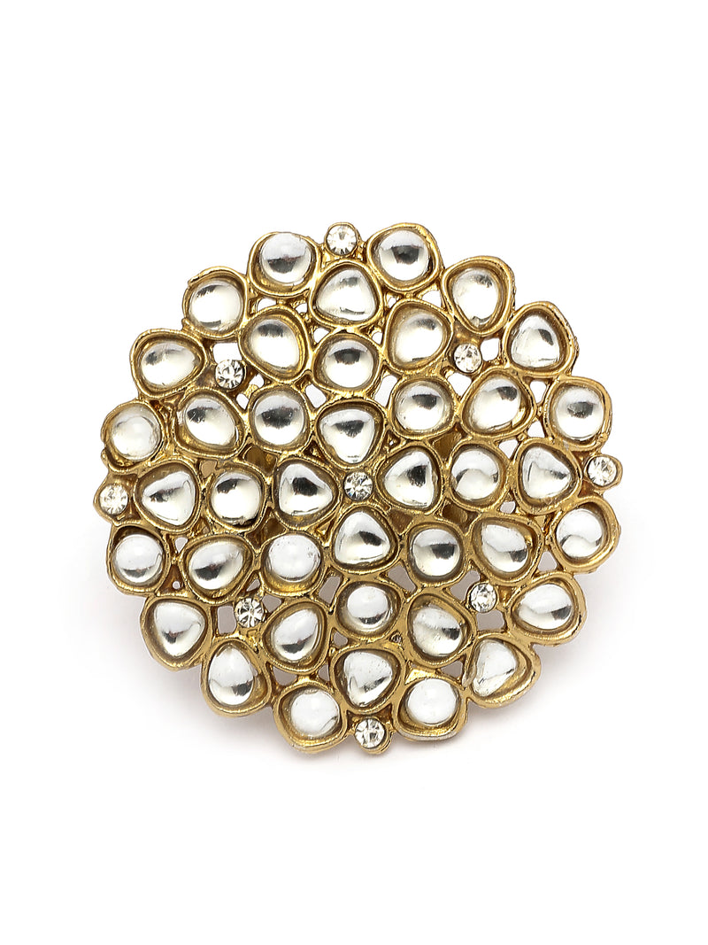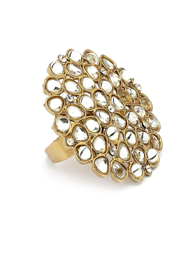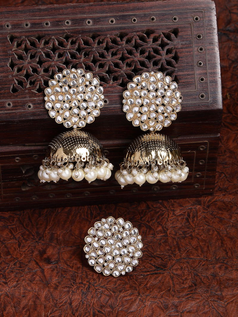 * Traditional Antique Design: This combo set features classic jhumka earrings and a matching ring, beautifully crafted with Kundan and pearl detailing for an elegant ethnic look.