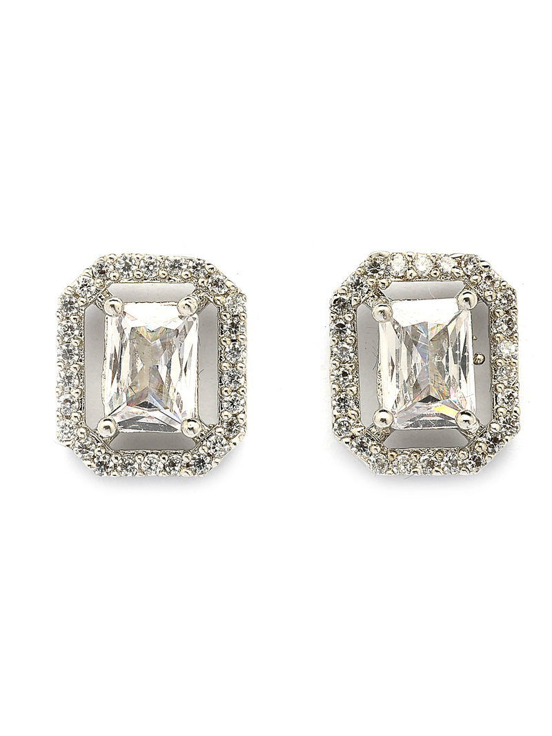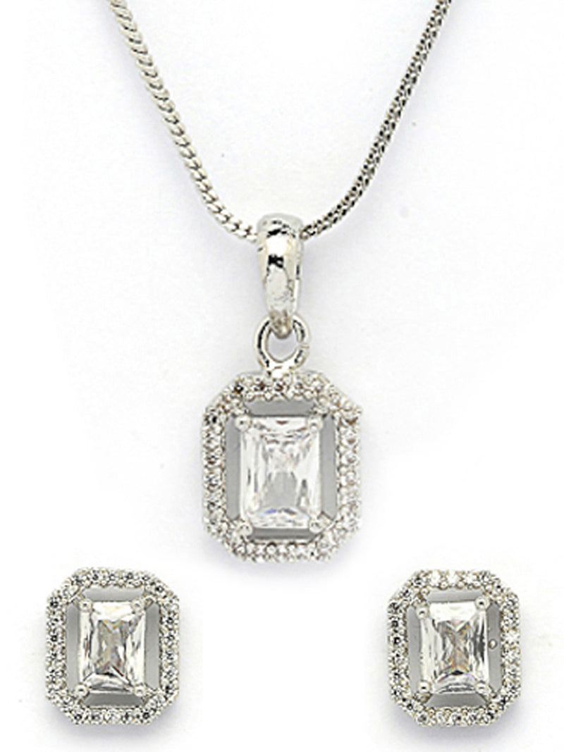 Sukkhi Most Beautiful Stylish Rhodium Plated Silver Toned White Cubic Zirconia Studded Pendant with Chain & Studs Earrings Jewellery Set for Women & Girls |NS107372|Enhance your everyday look with the Sukkhi Most Beautiful Stylish Rhodium Plated Silver Toned Jewellery Set. This elegant set features a sleek pendant adorned with white cubic zirconia stones, paired with a matching chain and coordinated stud earrings. The minimalistic design offers a graceful sparkle, making it suitable for both casual wear and special occasions. Whether you're dressing up for work or stepping out for a gathering, this set adds a refined charm to any outfit. A great pick for women and girls who appreciate subtle shine and modern flair, it also makes a thoughtful gift for loved ones.