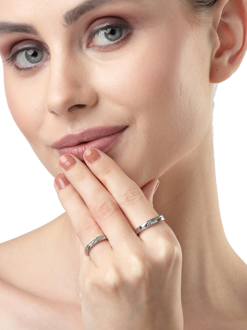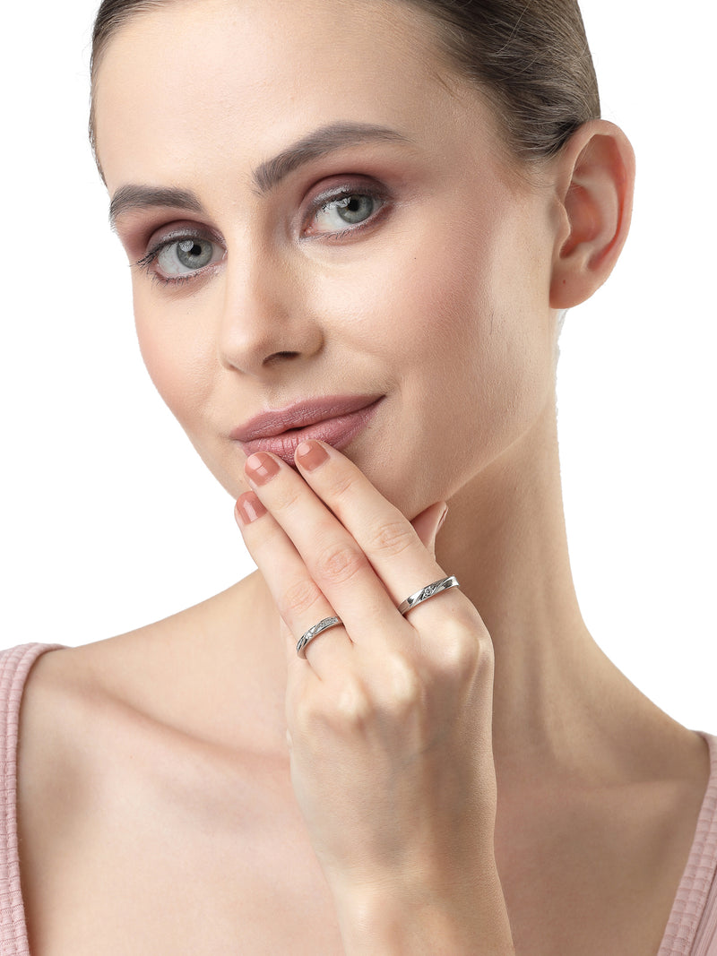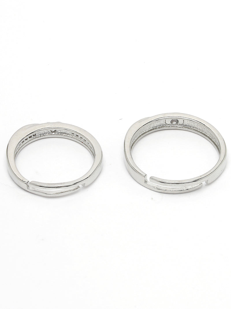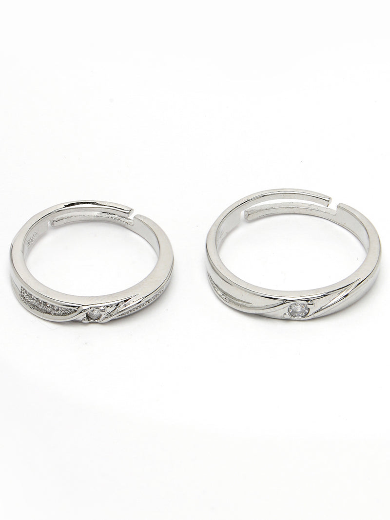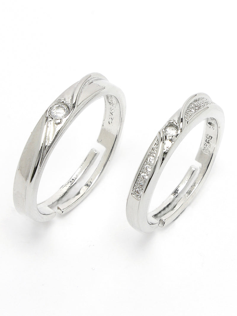 Discover timeless elegance with Scintillare by Sukkhi's charming Couple Promise Finger Ring set. Crafted with rhodium-plated silver and adorned with American diamond solitaires, these stylish rings create a symbol of enduring love. Perfect for couples, the set is an ideal expression of commitment and makes for a thoughtful Valentine's Day gift. Embrace the essence of romance and sophistication with Scintillare, a collection that captures the beauty of love in each intricately designed piece.