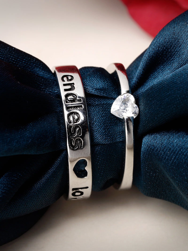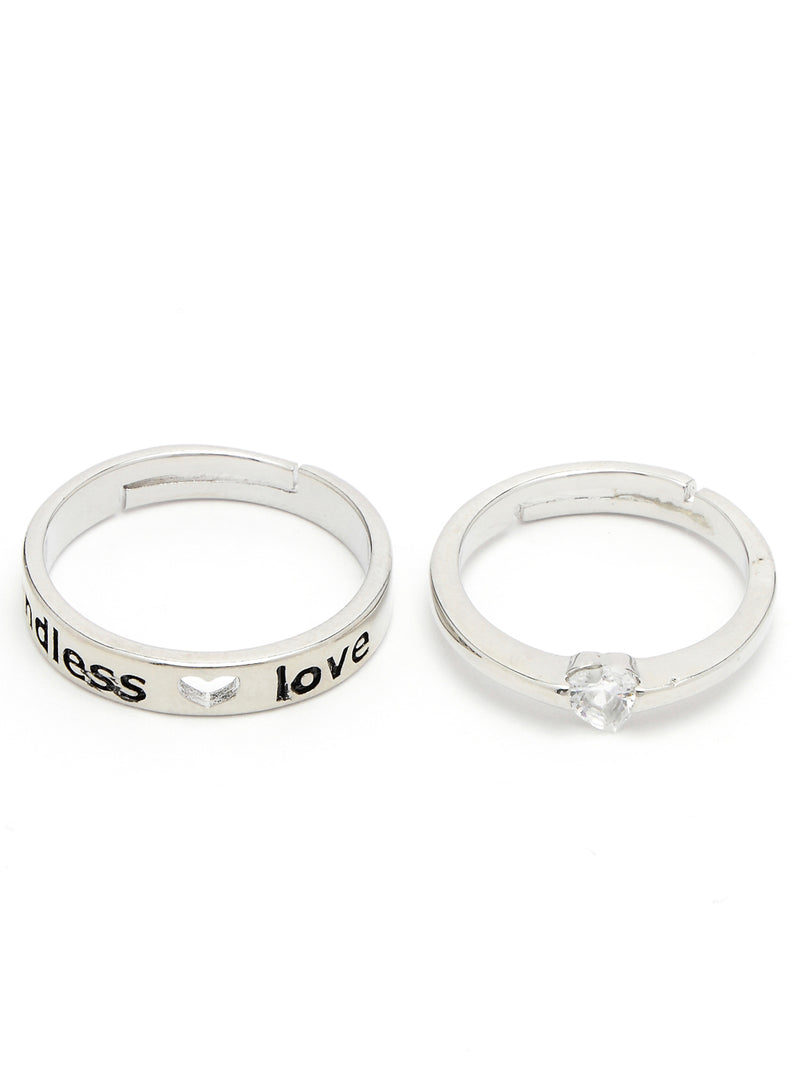 Celebrate your love with Scintillare by Sukkhi's elegant Couple Promise Finger Ring set. Crafted with rhodium-plated silver and featuring a heart-shaped American diamond solitaire, these stylish rings symbolize enduring romance. Adjustable for both men and women, this set makes for a perfect Valentine's Day gift. Embrace the essence of love and sophistication with Scintillare, a collection that captures the beauty of commitment in each intricately designed piece.