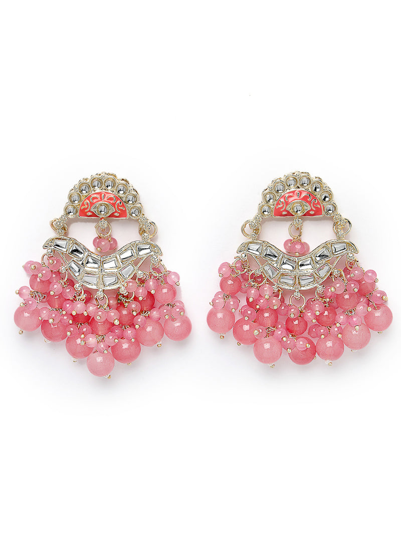 * Pretty Kundan and Pink Meenakari Design: These dangle drop earrings feature a pretty design with intricately studded Kundan stones and pink Meenakari work, offering a perfect blend of elegance and charm.