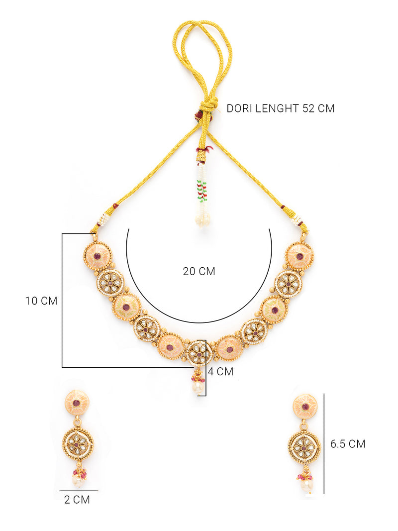 * Complete Set: This jewellery set includes a round choker necklace paired with matching dangle earrings, designed to elevate any ethnic outfit.