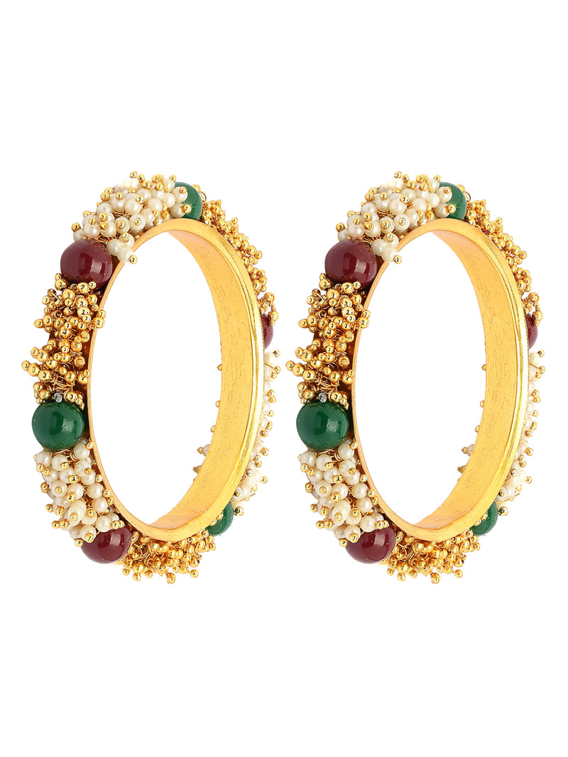 Sukkhi Fashion Traditional Gold Plated Pearls Studded Red Green Bangle Bracelet Jewellery for Women & Girls|Set of 2|Size 2.4|B107293|Add a vibrant touch to your attire with the Sukkhi Fashion Traditional Gold Plated Pearl Studded Red Green Bangle Bracelet Set. This pair, designed in size 2.4, 2.6 & 2.8 showcases a beautiful combination of red and green accents with delicate pearl embellishments, reflecting the richness of traditional Indian jewellery. The detailed craftsmanship and radiant gold plating make it a perfect match for festive wear, weddings, or cultural events. Whether paired with sarees or salwar suits, these bangles bring a pop of color and charm to your look. A timeless addition to any jewellery box, suited for both women and girls.