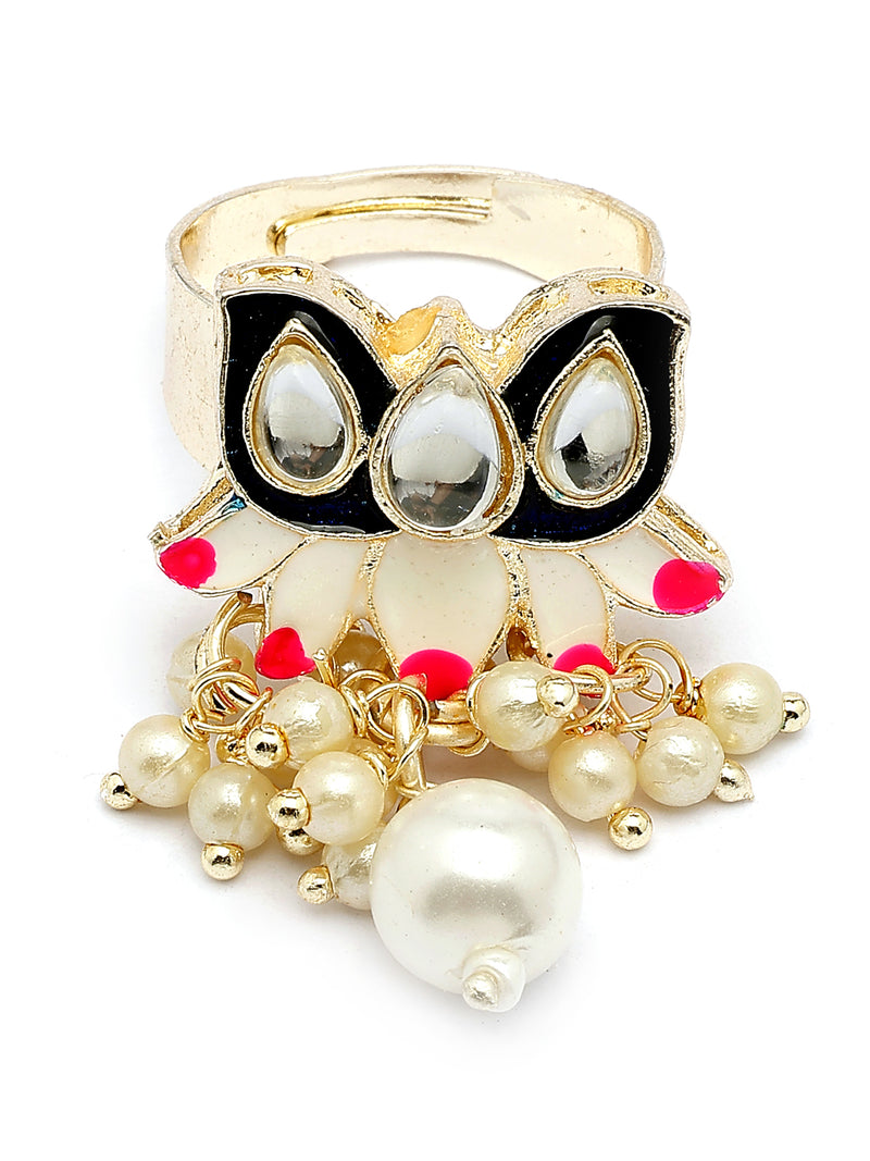 * Faux Pearls Embellishment: Studded with faux pearls that add softness and grace to the choker, earrings, and ring combo.
