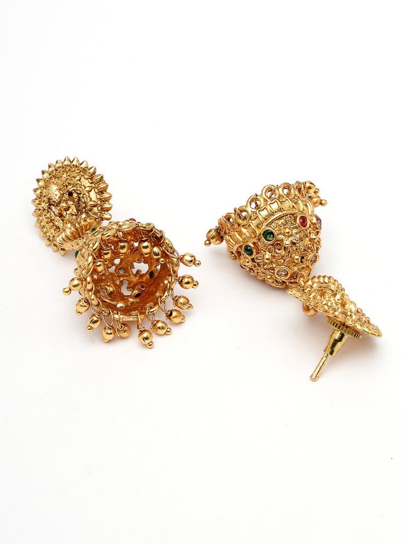 The Sukkhi Artistic Gold Plated Temple Choker Necklace Set with Crystal Stones is a beautiful fusion of traditional and modern design. Featuring a stunning arrangement of crystal stones set in a gold-plated base, the necklace offers a sophisticated look that complements any ethnic or festive attire. The intricate temple design adds a touch of cultural richness, while the matching jhumki/jhumka earrings complete the ensemble. Perfect for weddings, festivals, or special occasions, this set is designed to make you shine with grace and elegance, adding a refined, ethnic charm to your jewellery collection. Ideal for women and girls.
