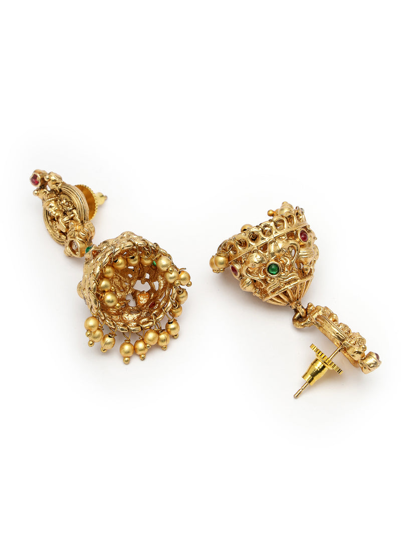 * Traditional Design: Sukkhi Classic Gold Plated Temple Choker Necklace Set features intricate detailing with off-white pearls, showcasing a timeless ethnic charm. Gold Plating: The gold plating enhances the intricate temple-inspired design, making it ideal for festive and cultural events.