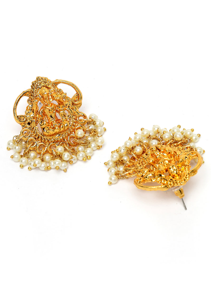 * Temple-inspired Elegance: Adorn yourself with the regal charm of the Sukkhi South Indian Temple Gold Plated White Beaded Collarbone Necklace Set. The design is inspired by South Indian temple jewelry, exuding a traditional and divine aura that enhances your overall look.