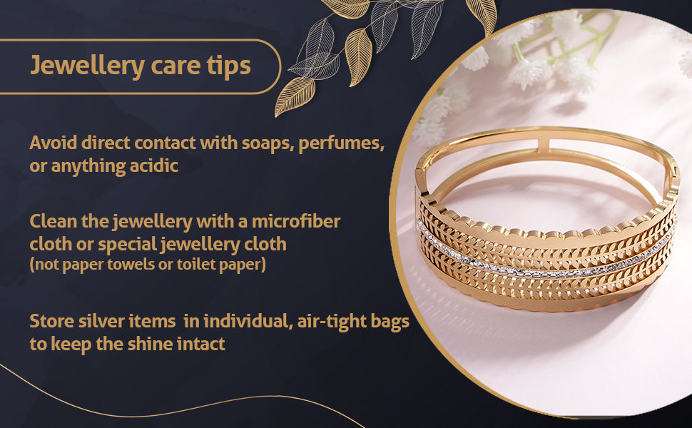 * Care Instruction : Avoid water contact, including swimming or bathing. Keep away from chemicals like perfumes and lotions. Store in a cool, dry place away from sunlight. Clean gently with a soft, lint-free cloth. Handle delicately to avoid bending or pulling. This will keep your jewellery shining for years.