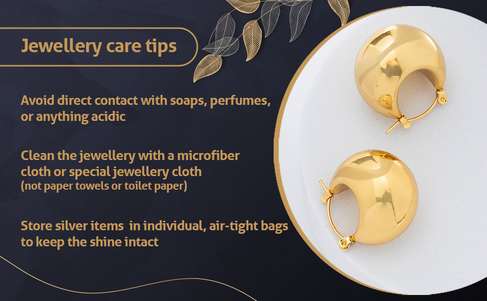 * Care Instruction : Avoid water contact, including swimming or bathing. Keep away from chemicals like perfumes and lotions. Store in a cool, dry place away from sunlight. Clean gently with a soft, lint-free cloth. Handle delicately to avoid bending or pulling. This will keep your jewellery shining for years.