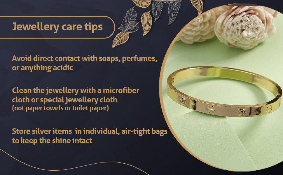 * Care Instruction : Avoid water contact, including swimming or bathing. Keep away from chemicals like perfumes and lotions. Store in a cool, dry place away from sunlight. Clean gently with a soft, lint-free cloth. Handle delicately to avoid bending or pulling. This will keep your jewellery shining for years.