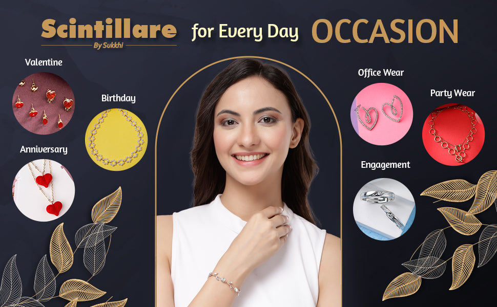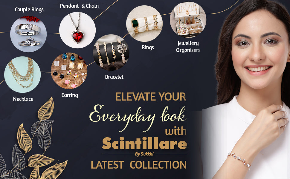 Scintillare By Sukkhi Creative Leaf Shaped Rose Gold Plated Crystal Stones Studded White Bracelet Bangle Jewellery for Women & Girls|Perfect for All Festive Occasions. Scintillare by Sukkhi presents a creatively designed leaf-shaped bracelet bangle that adds a refined charm to any attire. Crafted with rose gold plating, it features sparkling white crystal stones that enhance its graceful appearance. The leaf motif lends a touch of nature-inspired elegance, making it suitable for traditional celebrations or modern gatherings. Whether you're attending a festive event or adding a stylish accent to your daily outfit, this bracelet bangle effortlessly complements a wide range of looks. Designed for women and girls who appreciate artistic jewellery with a modern twist, it also makes a thoughtful gift for special occasions.