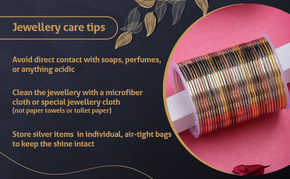 * Care Instruction : Avoid water contact, including swimming or bathing. Keep away from chemicals like perfumes and lotions. Store in a cool, dry place away from sunlight. Clean gently with a soft, lint-free cloth. Handle delicately to avoid bending or pulling. This will keep your jewellery shining for years.
