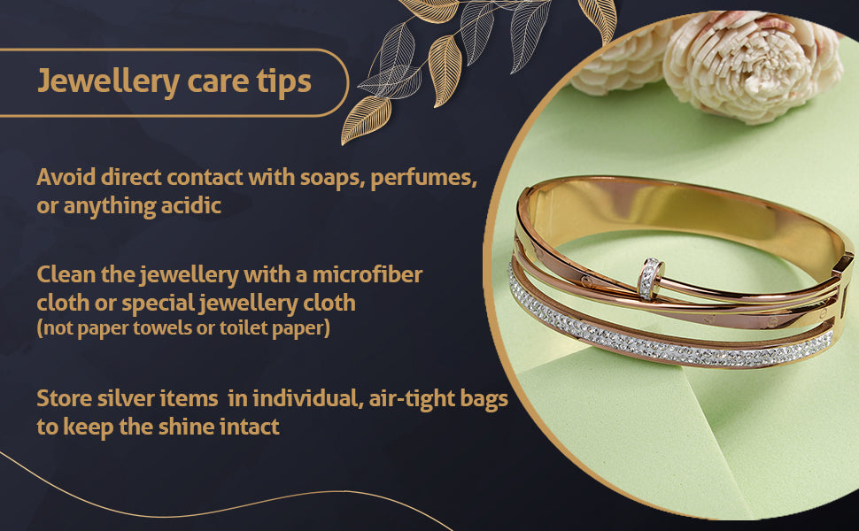 * Care Instruction : Avoid water contact, including swimming or bathing. Keep away from chemicals like perfumes and lotions. Store in a cool, dry place away from sunlight. Clean gently with a soft, lint-free cloth. Handle delicately to avoid bending or pulling. This will keep your jewellery shining for years.