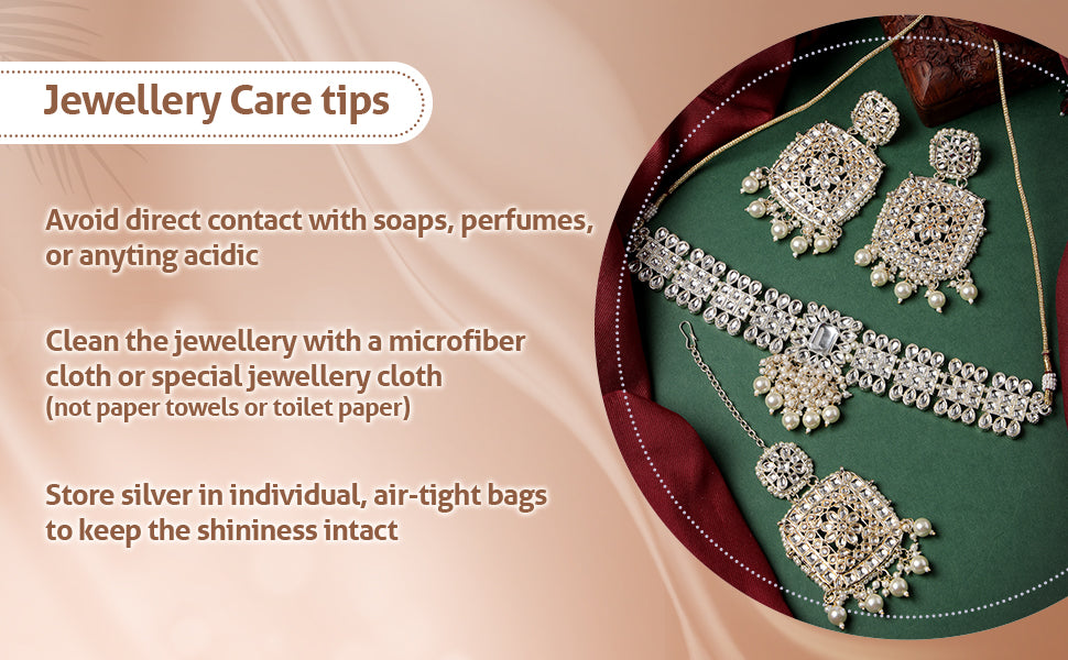 * Care Instruction : Avoid water contact, including swimming or bathing. Keep away from chemicals like perfumes and lotions. Store in a cool, dry place away from sunlight. Clean gently with a soft, lint-free cloth. Handle delicately to avoid bending or pulling. This will keep your jewellery shining for years.