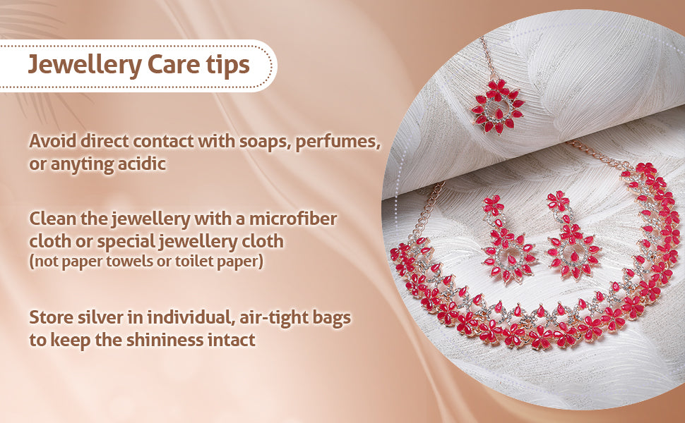 * Care Instruction : Avoid water contact, including swimming or bathing. Keep away from chemicals like perfumes and lotions. Store in a cool, dry place away from sunlight. Clean gently with a soft, lint-free cloth. Handle delicately to avoid bending or pulling. This will keep your jewellery shining for years.