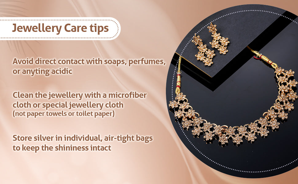 * Care Instruction : Avoid water contact, including swimming or bathing. Keep away from chemicals like perfumes and lotions. Store in a cool, dry place away from sunlight. Clean gently with a soft, lint-free cloth. Handle delicately to avoid bending or pulling. This will keep your jewellery shining for years.