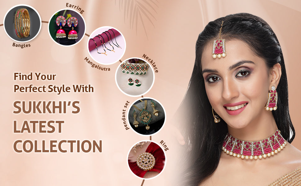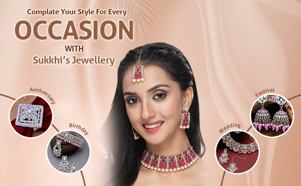 * Complete Jewelry Ensemble: With a coordinated choker necklace, earrings, and Maangtika, this Sukkhi jewellery set offers a well-matched and complete ensemble, suitable for weddings, parties, and special occasions.