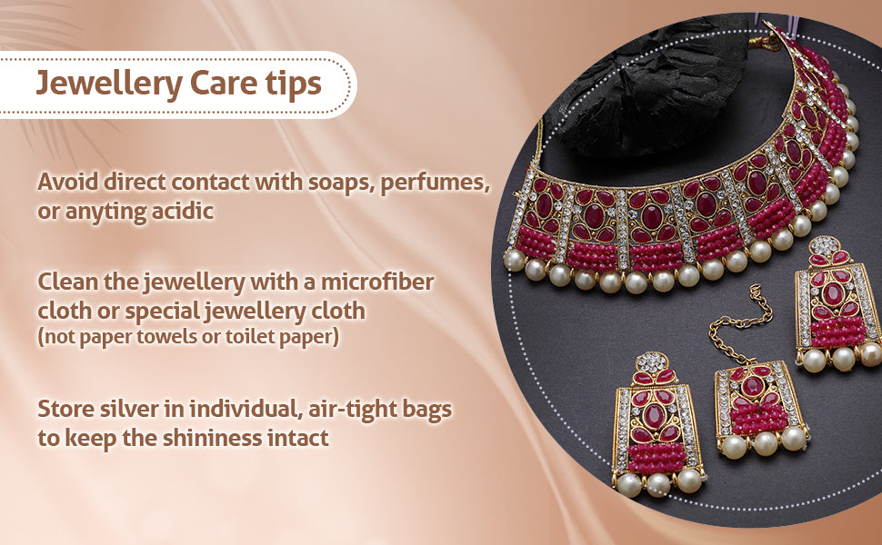 * Ideal Gift Choice: The Sukkhi Adorable Unique Stylish Rani Pink Stone With Pearls Choker Necklace Earring & Maangtika Jewellery Set makes for an ideal gift choice for women, whether it's for a birthday, anniversary, or any other significant event. Its adorable and stylish design is sure to be cherished by the recipient.