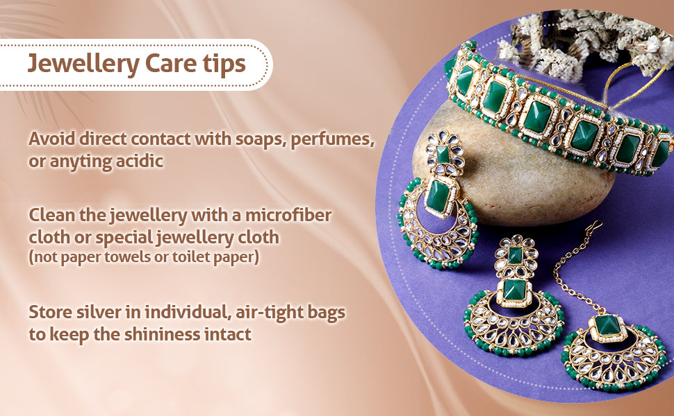 * Care Instruction : Avoid water contact, including swimming or bathing. Keep away from chemicals like perfumes and lotions. Store in a cool, dry place away from sunlight. Clean gently with a soft, lint-free cloth. Handle delicately to avoid bending or pulling. This will keep your jewellery shining for years.