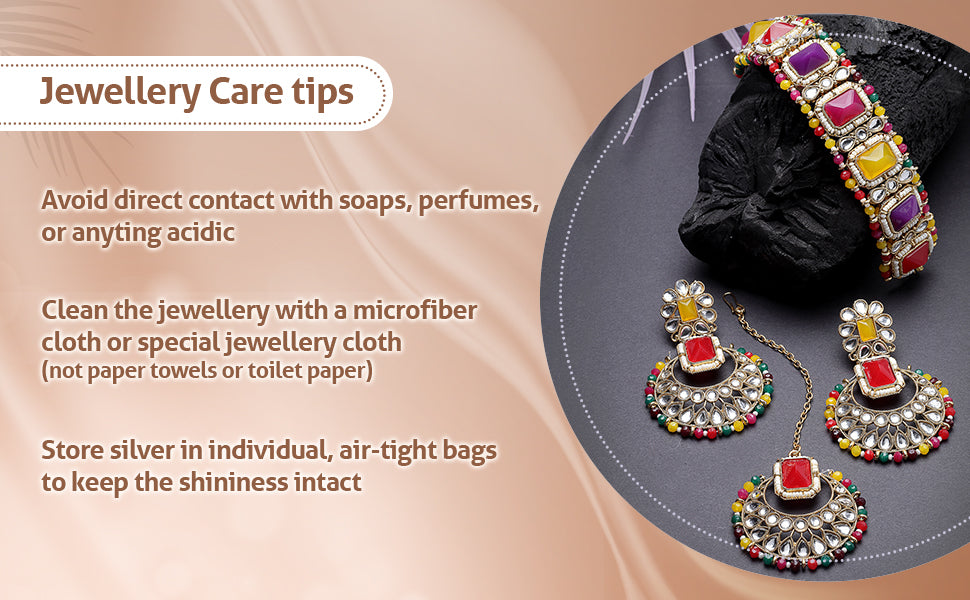 * Care Instruction : Avoid water contact, including swimming or bathing. Keep away from chemicals like perfumes and lotions. Store in a cool, dry place away from sunlight. Clean gently with a soft, lint-free cloth. Handle delicately to avoid bending or pulling. This will keep your jewellery shining for years.
