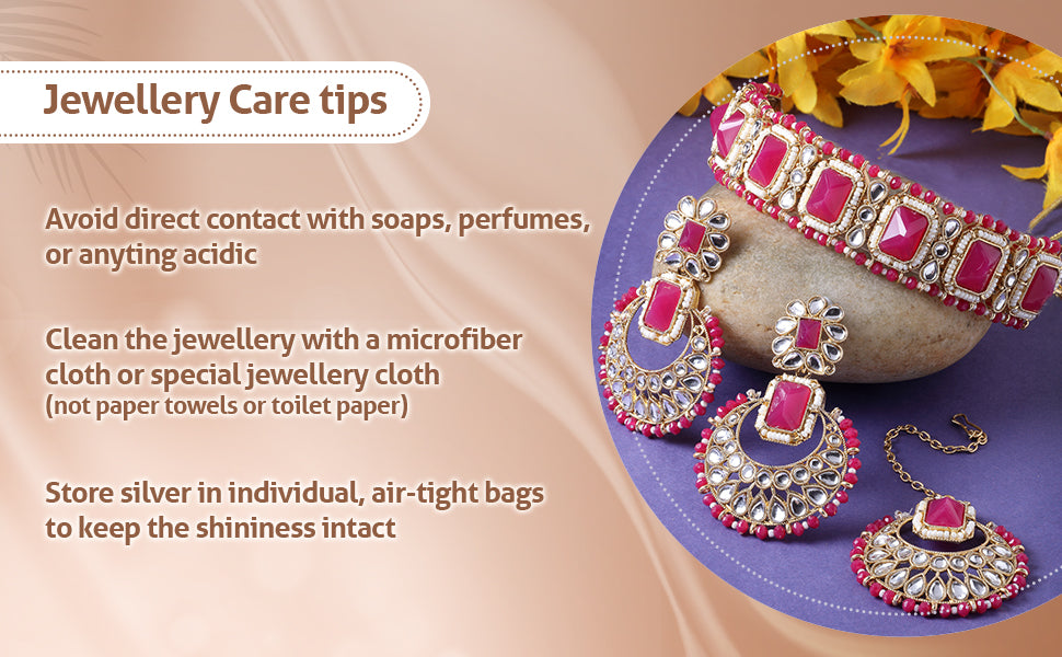 * Care Instruction : Avoid water contact, including swimming or bathing. Keep away from chemicals like perfumes and lotions. Store in a cool, dry place away from sunlight. Clean gently with a soft, lint-free cloth. Handle delicately to avoid bending or pulling. This will keep your jewellery shining for years.