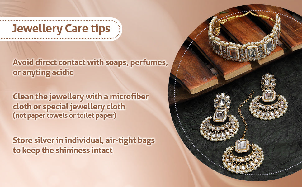 * Care Instruction : Avoid water contact, including swimming or bathing. Keep away from chemicals like perfumes and lotions. Store in a cool, dry place away from sunlight. Clean gently with a soft, lint-free cloth. Handle delicately to avoid bending or pulling. This will keep your jewellery shining for years.