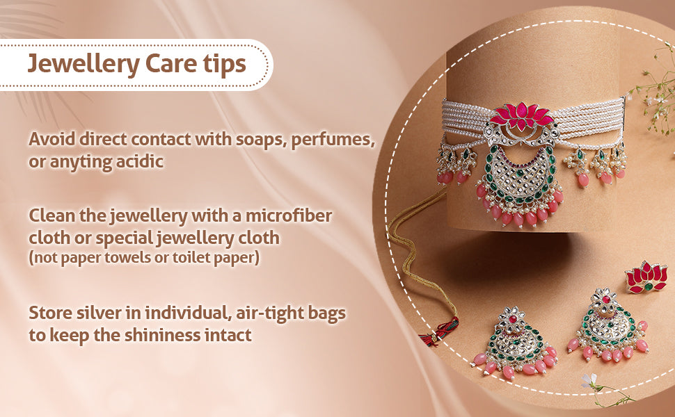 * Care Instruction : Avoid water contact, including swimming or bathing. Keep away from chemicals like perfumes and lotions. Store in a cool, dry place away from sunlight. Clean gently with a soft, lint-free cloth. Handle delicately to avoid bending or pulling. This will keep your jewellery shining for years.