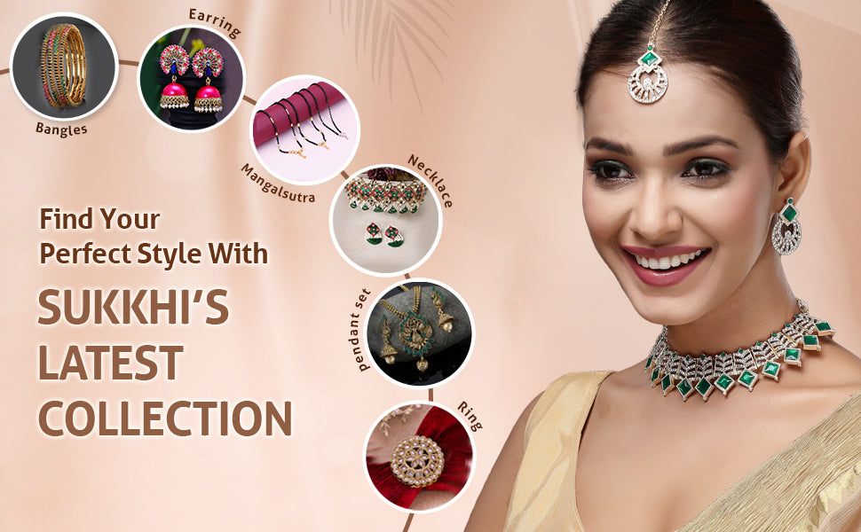Sukkhi All-Season Gold Plated AD Stones & Beads Choker Necklace Set With Earring And Maangtika | Jewellery Set For Women Enhance your look year-round with the Sukkhi All-Season Choker Necklace Set, designed with a radiant gold plated finish. This versatile jewellery set features a beautifully crafted choker adorned with shimmering AD stones and elegant beads, paired with matching earrings and a maangtika. Ideal for any occasion—be it a festive celebration, family function, or wedding—the set adds charm and sparkle to your ensemble. Its balanced design complements both ethnic and fusion outfits, making it a reliable choice for your jewellery collection. Thoughtfully put together, this set brings style and tradition together in one graceful combination.