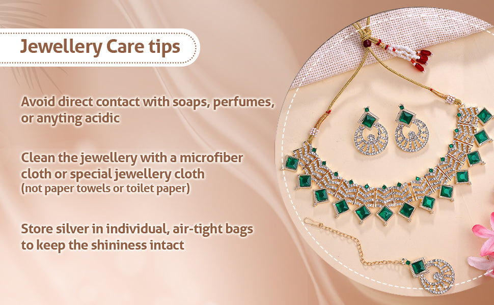 * Care Instruction : Avoid water contact, including swimming or bathing. Keep away from chemicals like perfumes and lotions. Store in a cool, dry place away from sunlight. Clean gently with a soft, lint-free cloth. Handle delicately to avoid bending or pulling. This will keep your jewellery shining for years.