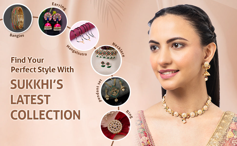 * Elegant Design: Sukkhi 18k Gold Plated Choker Necklace Set features exquisite pearl embellishments and traditional Meenakari work, offering a captivating ethnic appeal. Gold Plating: The vibrant gold plating complements the detailed Meenakari artwork, adding a striking touch to your overall look.