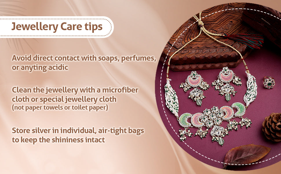 * Care Instruction : Avoid water contact, including swimming or bathing. Keep away from chemicals like perfumes and lotions. Store in a cool, dry place away from sunlight. Clean gently with a soft, lint-free cloth. Handle delicately to avoid bending or pulling. This will keep your jewellery shining for years.