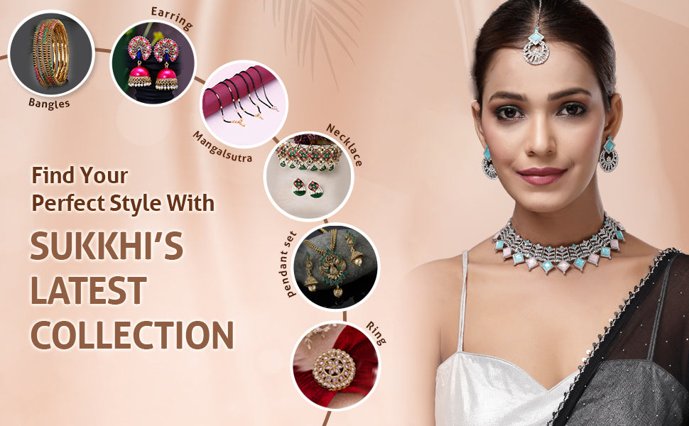 Sukkhi Attractive Rhodium Plated AD Stones & Beads Choker Necklace Set With Earring And Maangtika | Jewellery Set For Women Make a striking impression with the Sukkhi Attractive Choker Necklace Set, designed with a refined rhodium plated finish. This elegant jewellery set includes a choker adorned with sparkling AD stones and delicately arranged beads, along with matching earrings and a maangtika for a coordinated look. Ideal for festive events, weddings, or cultural celebrations, this set adds a graceful accent to traditional and fusion wear. The thoughtful design and detailed craftsmanship make it a standout accessory in any jewellery collection. Whether you're dressing up for a special occasion or gifting it to someone, this set brings charm and style together effortlessly.