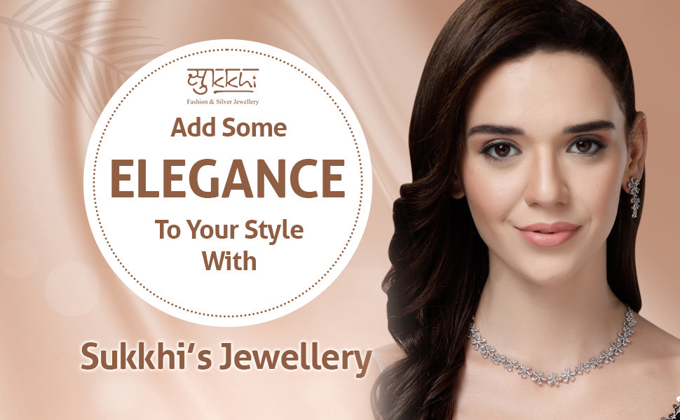 Sukkhi Attractive Rhodium Plated Silver Toned with American Diamond Studded Floral Shaped Choker Necklace with Drop Earring Jewellery Set For Women & Girls|NS107419|Enhance your jewellery collection with the Sukkhi Attractive Rhodium Plated Silver Toned Choker Necklace Set. Designed with a delicate floral motif, this set is adorned with shimmering American diamonds that offer a radiant finish. The choker pairs effortlessly with matching drop earrings to create a balanced and eye-catching look. Ideal for festive occasions, family gatherings, or weddings, this set adds a refined sparkle to any outfit. Whether styled with a saree or a modern ensemble, it brings out a graceful charm. A perfect pick for women and girls who appreciate timeless elegance with a hint of contemporary flair.